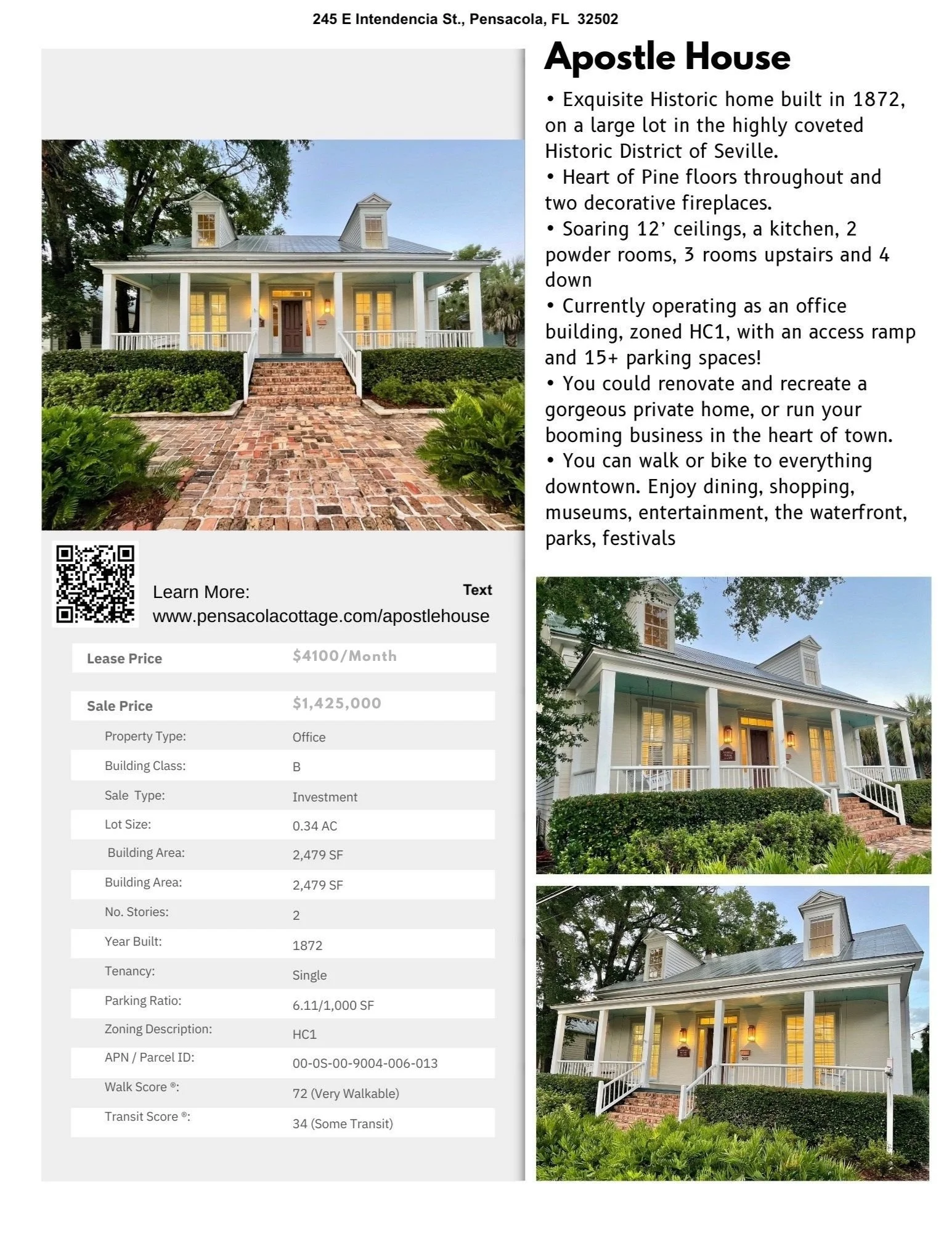 SALE: $1,425,000 or Lease: $4100/month
